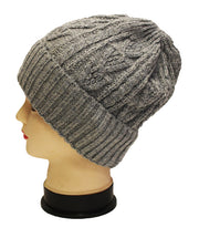 Thick cable knit beanie with folded brim. Soft, stretchy and warm—ideal for daily winter wear or outdoor activities.