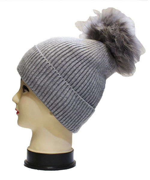 Fox Fur Pom-Pom Beanie - HT2001