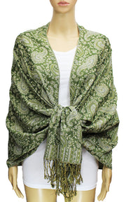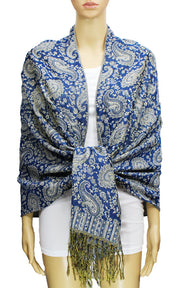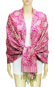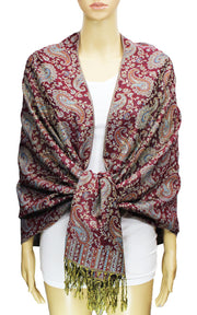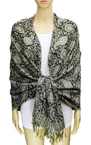 Elegant pashmina shawl with intricate paisley patterns and stylish fringe. Soft, lightweight, and perfect for any occasion.