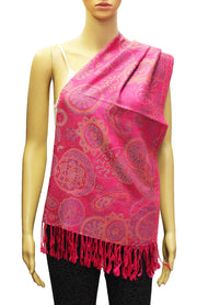 Soft, lightweight, and stylish, this paisley pashmina shawl is perfect for evening events or daily wear. Its intricate design and fringe detailing add a touch of elegance to any outfit.