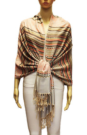 Wrap yourself in elegance with this lightweight Bohemian Striped Shawl. Crafted from ultra-soft fabric, it offers both warmth and style, perfect for evening outings, air-conditioned spaces, or casual wear. The vibrant striped pattern and delicate fringes create a sophisticated yet effortless look, making it a must-have accessory for any wardrobe.