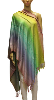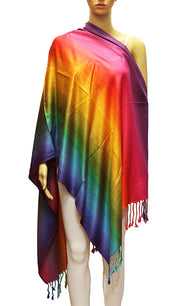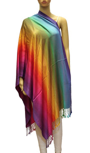 This elegant rainbow shawl is made of soft, lightweight fabric with a stunning gradient design and delicate tassel edges. Perfect for evening parties, air-conditioned rooms, or as a stylish wrap for any occasion.