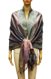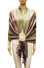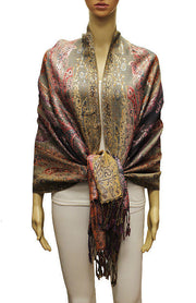 Colorful Silver-Thread Elegant Pashmina Shawl-BH2202