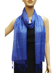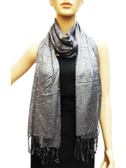 Elevate your style with this elegant scarf, woven with shimmering silver threads for a subtle sparkle. The lightweight fabric drapes beautifully, while the delicate fringe adds a sophisticated touch. Perfect for any occasion, from casual outings to evening events.