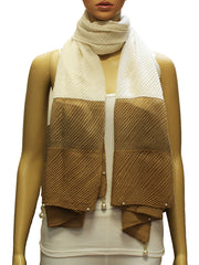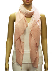 Elegant pleated scarf with a soft gradient color design, finished with delicate pearl drops for a graceful, feminine touch.