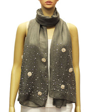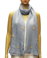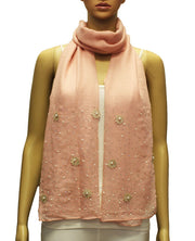 Chic lightweight scarf adorned with elegant pearl beads and floral embellishments, perfect for adding charm to everyday or formal outfits.