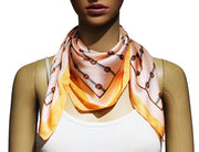 Charming silk-feel scarf with butterfly and floral print. Lightweight and elegant, perfect for brightening up any casual or formal outfit.