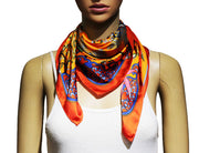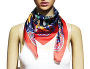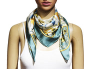 Soft silk-feel square scarf with delicate botanical prints. Adds natural charm and vibrant detail to any outfit.