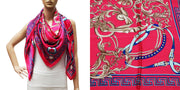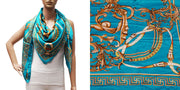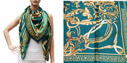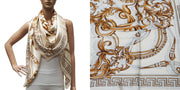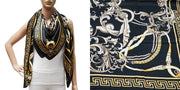 Luxurious silk-feel scarf with bold baroque chain pattern. Adds a sophisticated edge to any outfit, day or night.