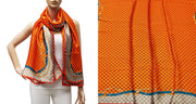 Elegant silk-feel scarf featuring bold geometric patterns and chain accents. Lightweight and smooth, ideal for all-season wear.