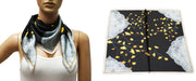 Elegant square scarf with golden ginkgo leaf print and silky texture. A graceful accessory for both casual and formal wear.