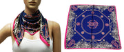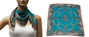 Chic square scarf with bold leopard and baroque motifs. Lightweight, silky texture perfect for neck, head, or handbag styling.