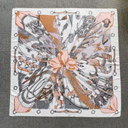 Elegant, silky-soft, and lightweight, this scarf features an intricate bow-centered design with vintage and nature-inspired elements. A statement piece for any stylish look!