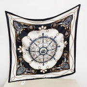 Set sail in style with this silk-feel scarf featuring a stunning nautical-inspired design. Anchors, ship wheels, evoking the elegance of the sea. Lightweight, smooth, and perfect for a maritime-chic look.