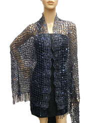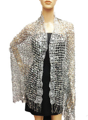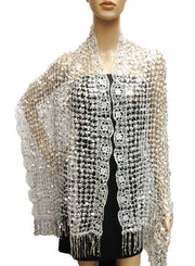 Dazzle in elegance with this shimmering sequin evening shawl. Intricately designed with floral lace and a delicate net pattern, it drapes beautifully over any outfit. Perfect for weddings, parties, and special occasions, adding a touch of glamour to your look.
