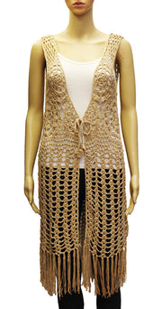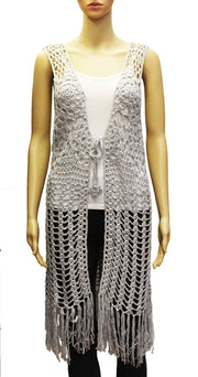 This handmade crochet vest brings effortless boho charm, featuring intricate patterns, soft cotton texture, and playful fringe for a free-spirited vibe.