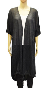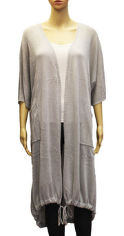 This breezy, open-front cardigan features half sleeves, roomy pockets, and an adjustable drawstring hem. A stylish and versatile layering piece for any season.