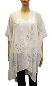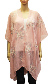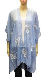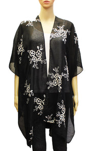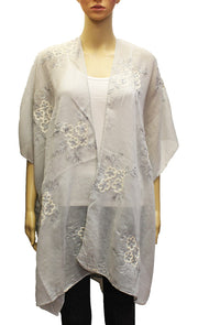This elegant sheer kimono features delicate floral embroidery, adding a touch of femininity. Perfect as a beach cover-up or a light layering piece for any occasion.