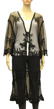 Sheer Floral Embroidered Long Kimono-SHW2003