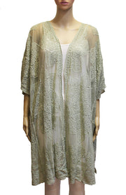 Chic and breathable sheer kimono with floral lace detailing. A perfect lightweight layer for beach, resort, or evening outfits.