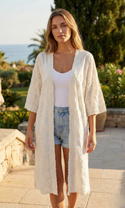 Airy and soft kimono with open front and relaxed fit. A versatile layer for casual outfits, beach days, or resort getaways.