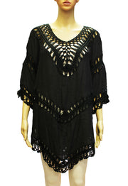 Summer Poncho / Beach Cover Crochet with lace sleeve