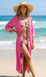 Multicolor Lace Poncho with Sleeve Open