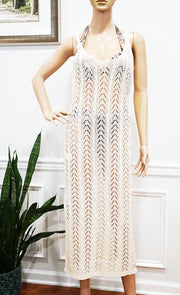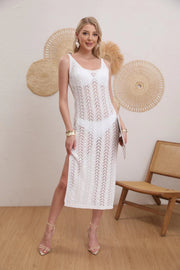 Gracefully crafted in a delicate crochet knit, this midi dress exudes effortless sophistication—ideal for beachside dinners or resort evenings.