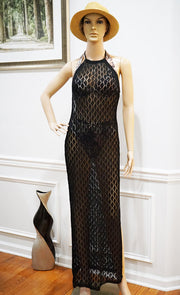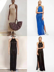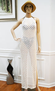 Sexy halter mesh maxi dress with side slit. Lightweight and breathable, ideal for beach days or summer nights.