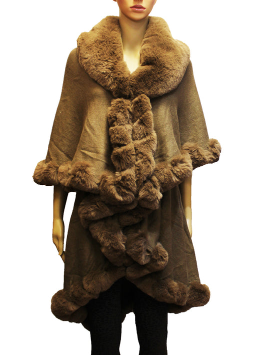 Faux Fur Trim Poncho Cape-SHW2017