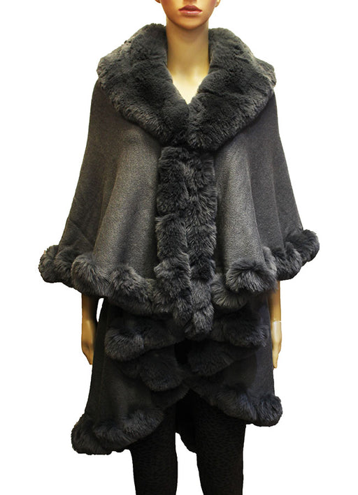 Max Accessories Collection IncFaux Fur Trim Poncho Cape-SHW2017