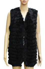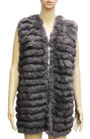 Luxuriously soft and stylish, this striped rabbit fur vest features horizontal layered fur rows for a textured and cozy look. Perfect for layering in cooler weather, it adds elegance and warmth to any outfit. Available in neutral shades like taupe and gray. One size fits most.