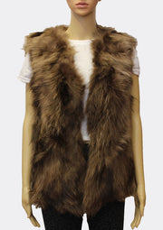 Make a bold style statement with this real fur vest, featuring rich natural tones, a full, fluffy texture, and open front design. Perfect for layering, it adds a touch of luxury and warmth to any outfit.