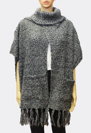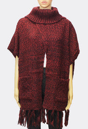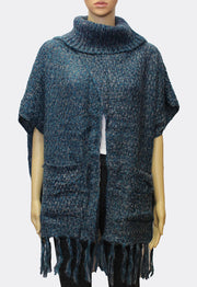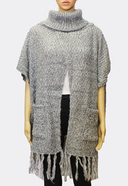Stay warm in this chunky knit poncho with a stylish turtleneck and fringed hem. Soft, breathable, and perfect for layering in any season.