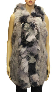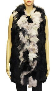 Luxuriously soft and bold, this rabbit fur vest features a striking two-tone design with black and gray tones cascading down the front. Perfect for layering over casual or dressy looks, it adds rich texture and standout style.