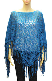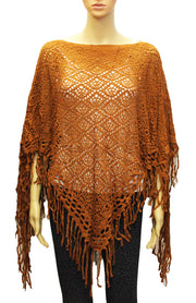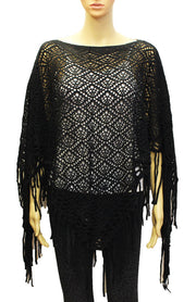 Elevate your outfit with our lightweight Boho crochet fringe poncho. Featuring an intricate open-knit design and soft drape, this versatile layering piece adds a touch of effortless style to any look. The asymmetric hemline and fringe detailing give it a relaxed, free-spirited vibe, perfect for casual days, beach cover-ups, or breezy evenings. One size fits most.