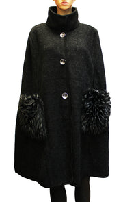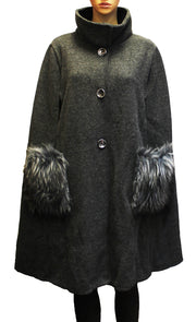 Stay warm in this chic wool-blend coat featuring a high collar, statement buttons, and soft faux fur cuffs for added elegance.
