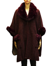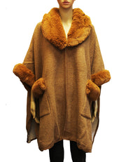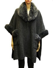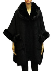 Luxuriously soft cape with cozy faux fur trim. Perfect for chilly days, combining warmth, elegance, and effortless layering.