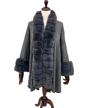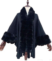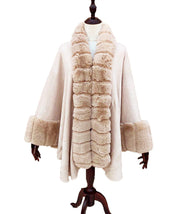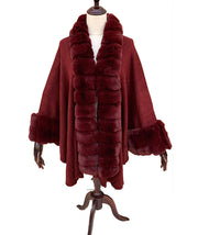 Plush faux fur trim elevates this elegant cape, offering ultimate warmth and glamour for chilly days and winter outings.