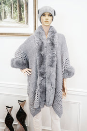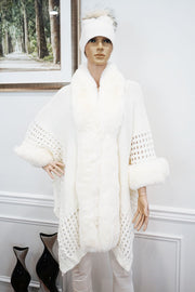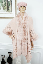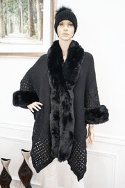 Cozy knit cape with soft faux fur trim and openwork sleeves—perfect for elegant layering in chilly weather.