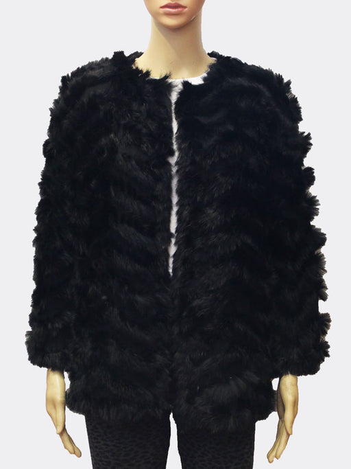Chevron Pattern Rabbit Fur Poncho-SHW1816