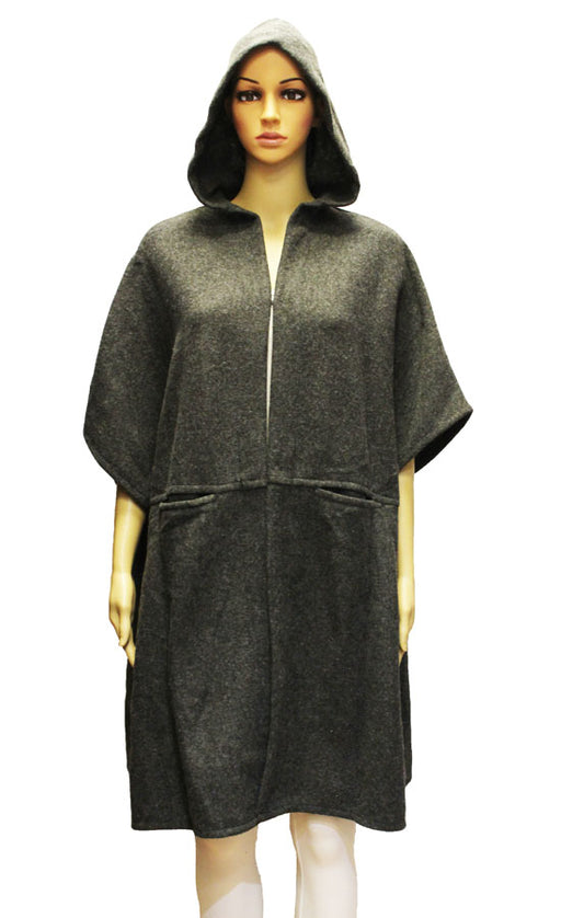 Cozy oversized cape with hood and front zip. Easy to layer and perfect for brisk days or casual streetwear looks.