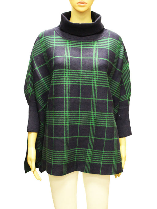Plaid Turtleneck Fringe Poncho-SHW1516