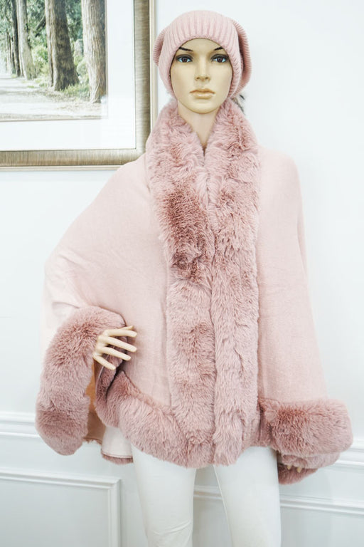 Stay cozy and stylish with this soft poncho cape, trimmed with plush faux fur for a luxurious winter-ready look.
