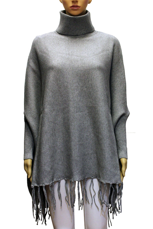 Stay warm and chic in this soft turtleneck poncho with playful fringe — perfect for layering on chilly days.