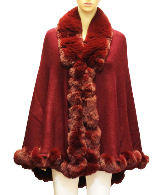 Elegant winter cape with plush faux fur edges, soft and warm, perfect for cozy layering on chilly days. One size fits all100% acrylic
