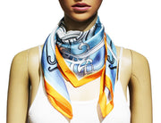 Silk-feel scarf with a vintage carriage motif. Perfect for elevating your everyday outfit with classic, timeless charm.