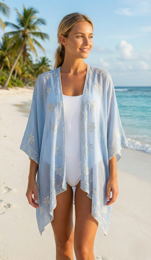 Max Accessories IncThis lightweight, sheer kimono features delicate floral embroidery and a breezy, flowy fit. Perfect as a stylish beach cover-up or casual layering ...