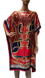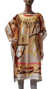 Silky loose-fit kaftan with baroque-style print, perfect for resort wear, lounging, or stylish beachside cover-up.